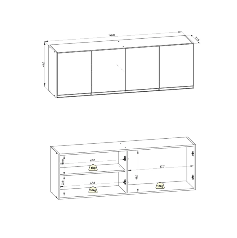 Con dimensiones de 140 × 46 × 27 cm, esta alacena es perfecta para espacios que requieren soluciones combinables y adaptables, facilitando la organización de tus utensilios y alimentos.