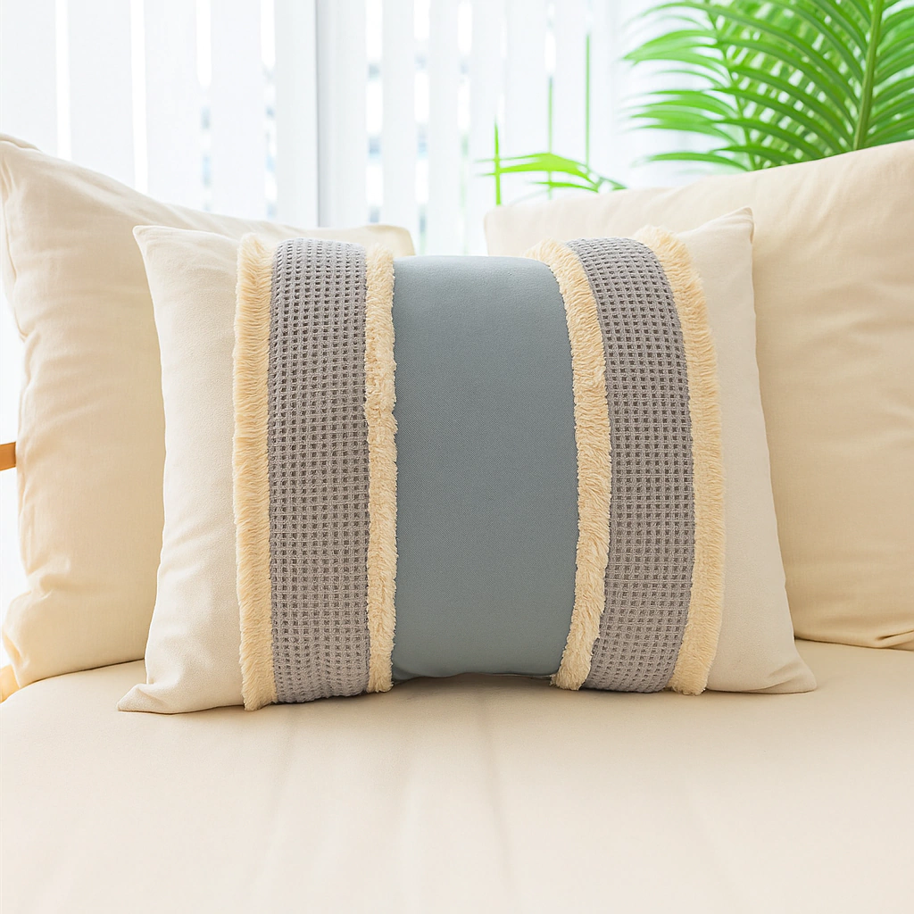 Este almohadón destaca por su patrón de líneas verticales en un delicado tono celeste, que aporta luminosidad y sensación de amplitud a cualquier ambiente. Su confección en materiales suaves y resistentes asegura una experiencia táctil placentera y una durabilidad que acompaña tu día a día.