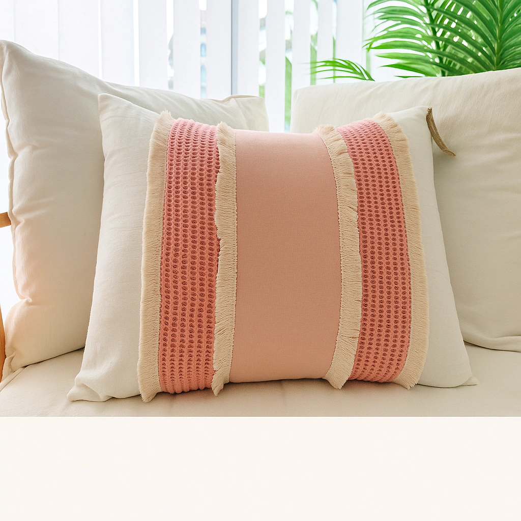 Descubrí el Almohadón Líneas Verticales Rosa (W33), la pieza ideal para darle un toque de sofisticación y frescura a cualquier ambiente. Su diseño con líneas verticales delicadamente contrastadas en tonos rosados aporta una sensación de armonía y estilo contemporáneo que transformará tu espacio.