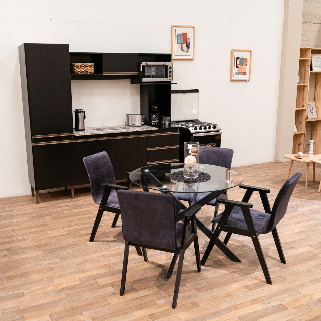 Descubrí el Amoblamiento de cocina Victoria 5 puertas 3 cajones negros, la solución perfecta para darle a tu cocina un estilo moderno y funcional. Con medidas de 203 x 215,5 x 52 cm, este mueble combina diseño y practicidad en un solo producto.