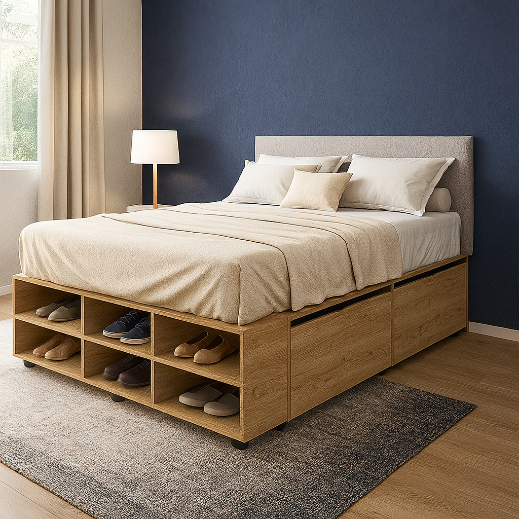 Este box cajón no solo optimiza el espacio, sino que también aporta un toque de calidez y naturalidad gracias a su acabado en Roble Nebraska Natural. Es ideal para quienes buscan una solución práctica sin resignar estilo.