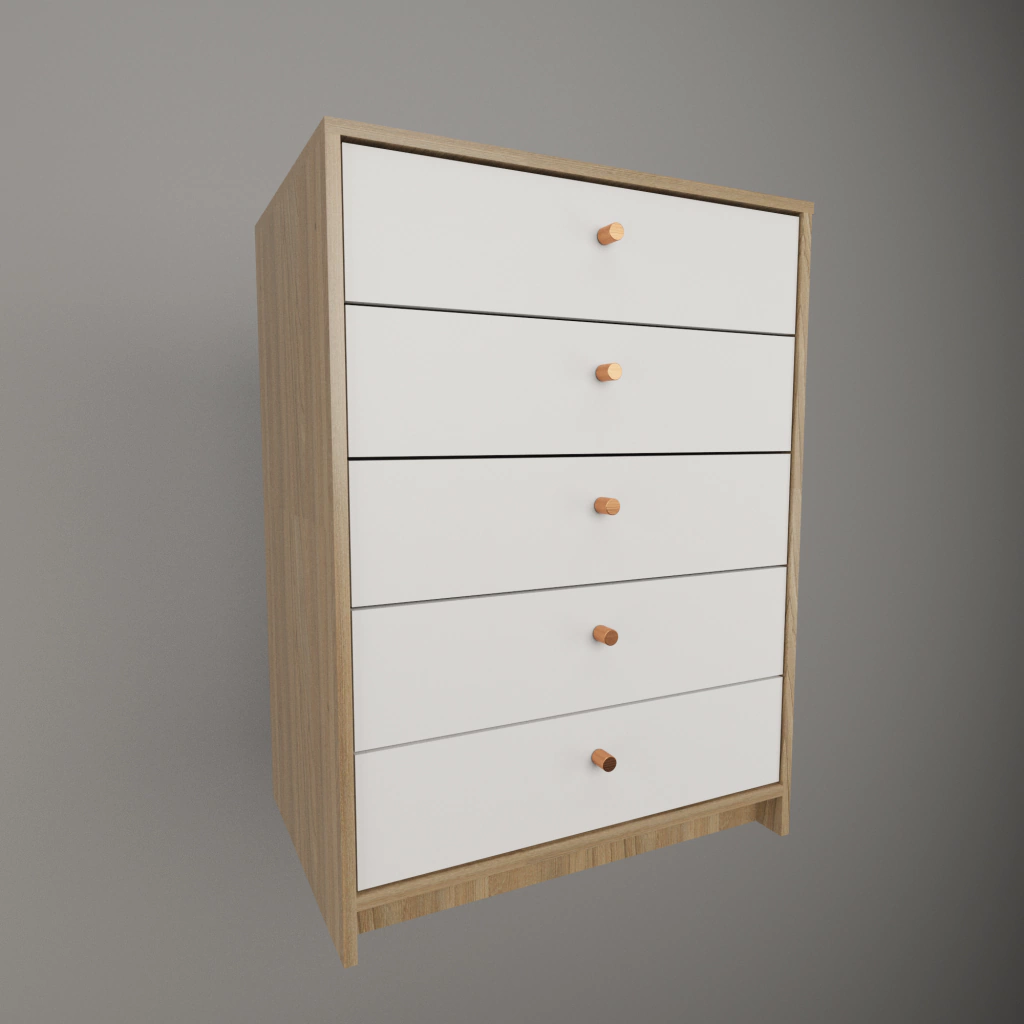 Su estructura sólida y un peso de 38 kg aseguran resistencia y durabilidad, mientras que sus cinco cajones te ofrecen un amplio espacio para organizar ropa, accesorios o cualquier objeto que desees mantener a mano.