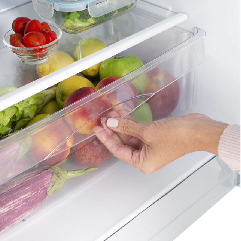 Además, cuenta con un cajón especial para frutas y verduras que conserva su frescura por más tiempo, luz interior LED y control mecánico de temperatura para un uso sencillo y cómodo.
