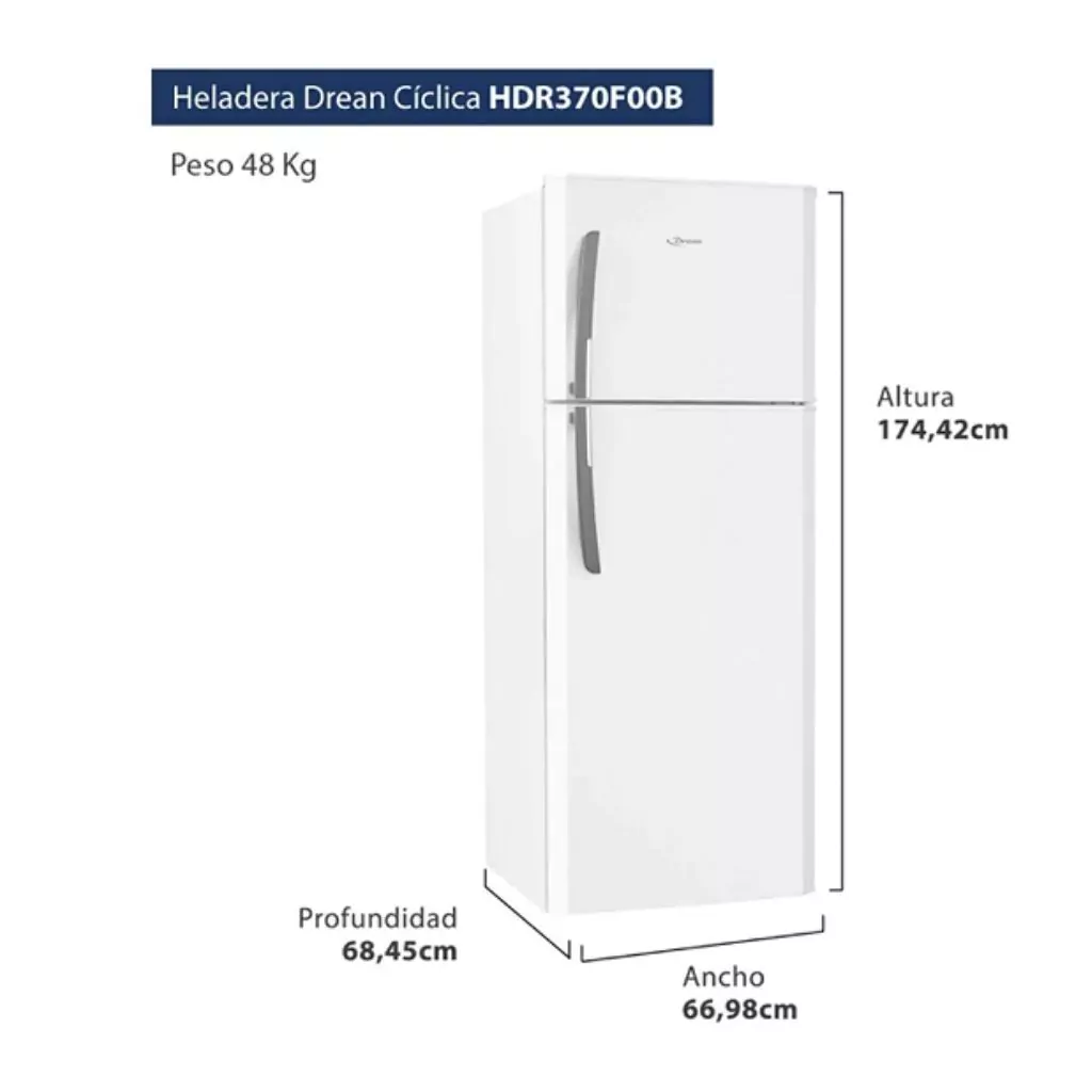 Descubrí la Heladera Cíclica Drean 364Lts Blanca (Hdr370F00B), la combinación perfecta de capacidad, eficiencia y diseño para tu hogar. Con una eficiencia energética A, esta heladera te ayuda a cuidar el medio ambiente y tu bolsillo.