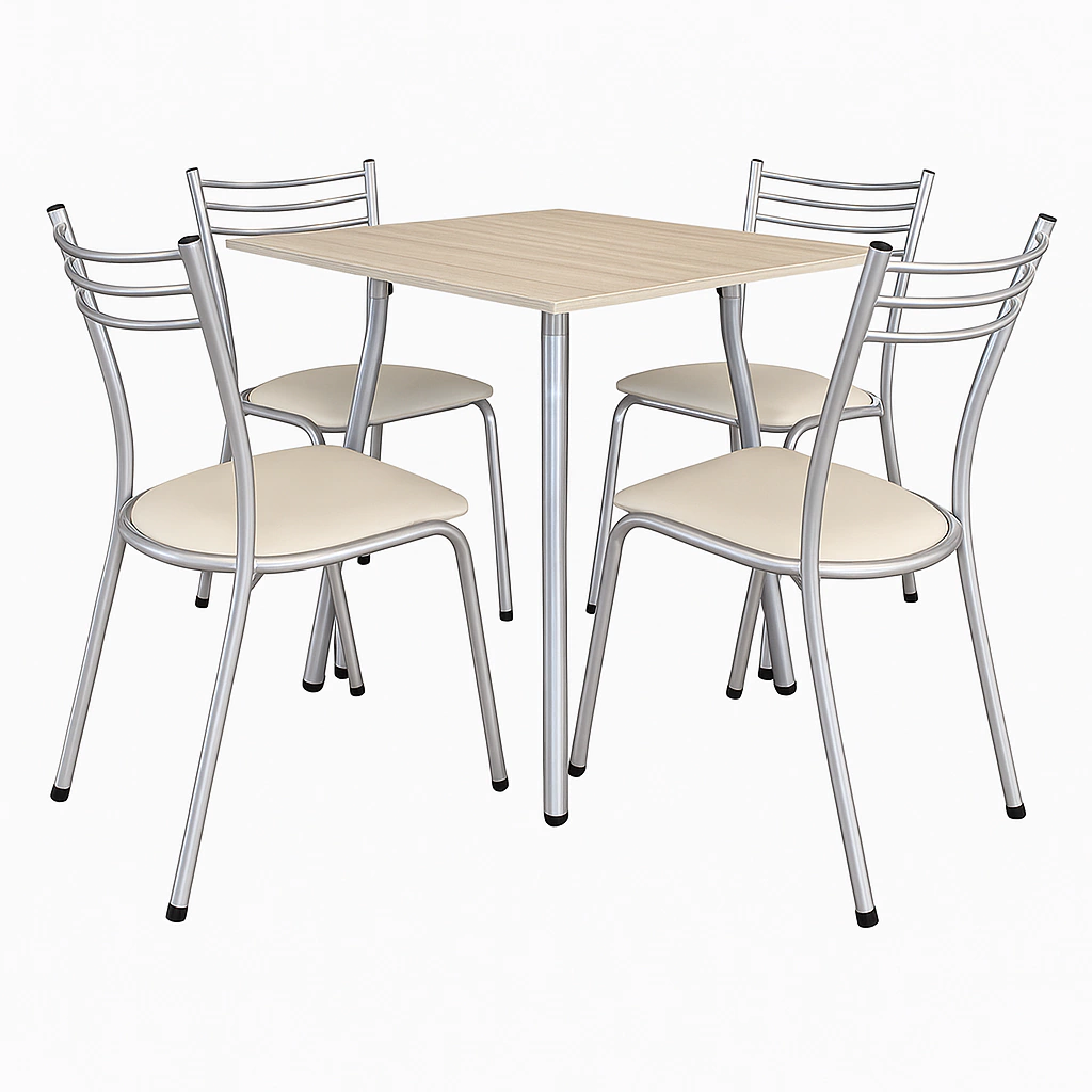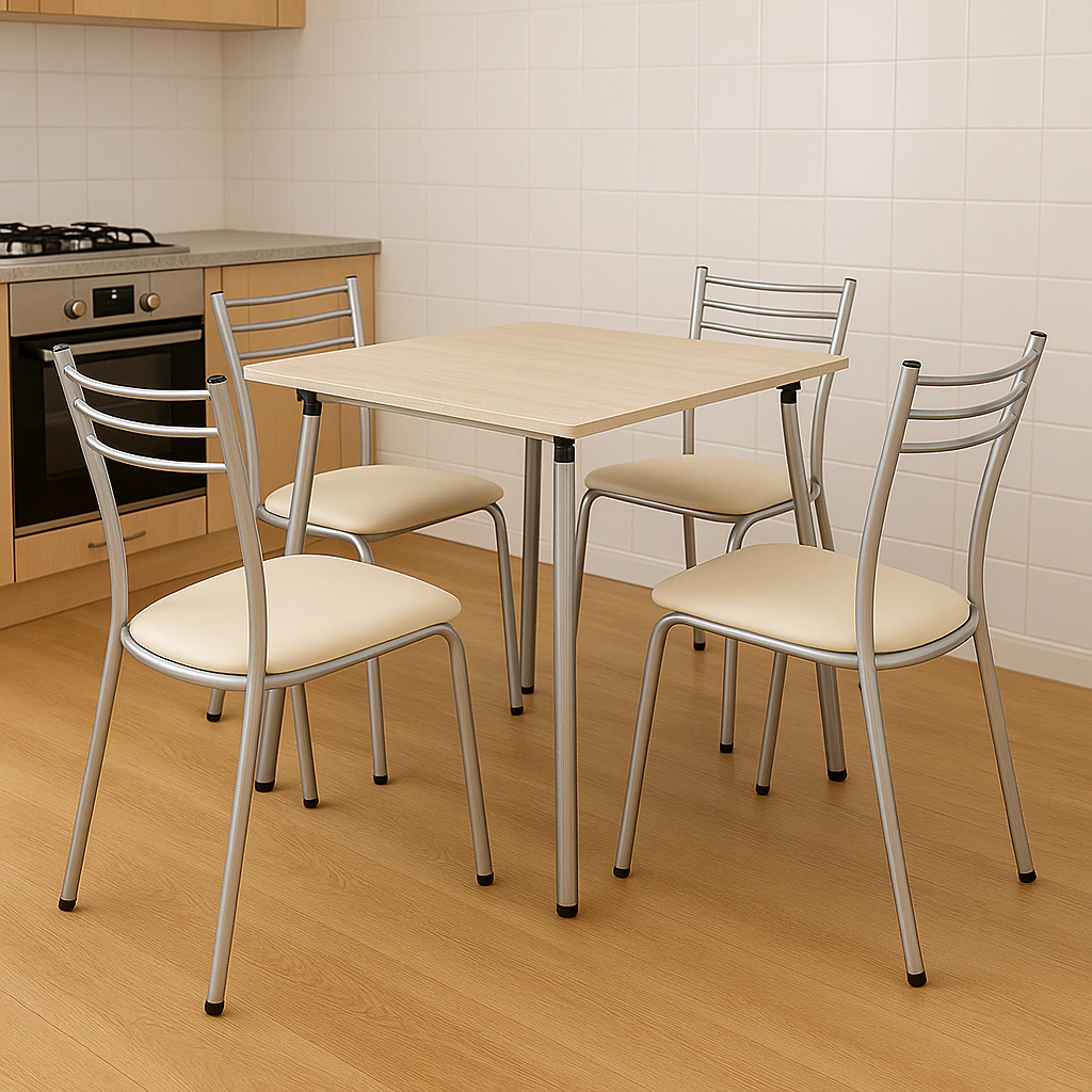 Este juego es perfecto para ambientes modernos que buscan funcionalidad sin perder la estética. Renová tu comedor con una propuesta que combina materiales resistentes y detalles cuidados para acompañarte en cada comida y reunión familiar.