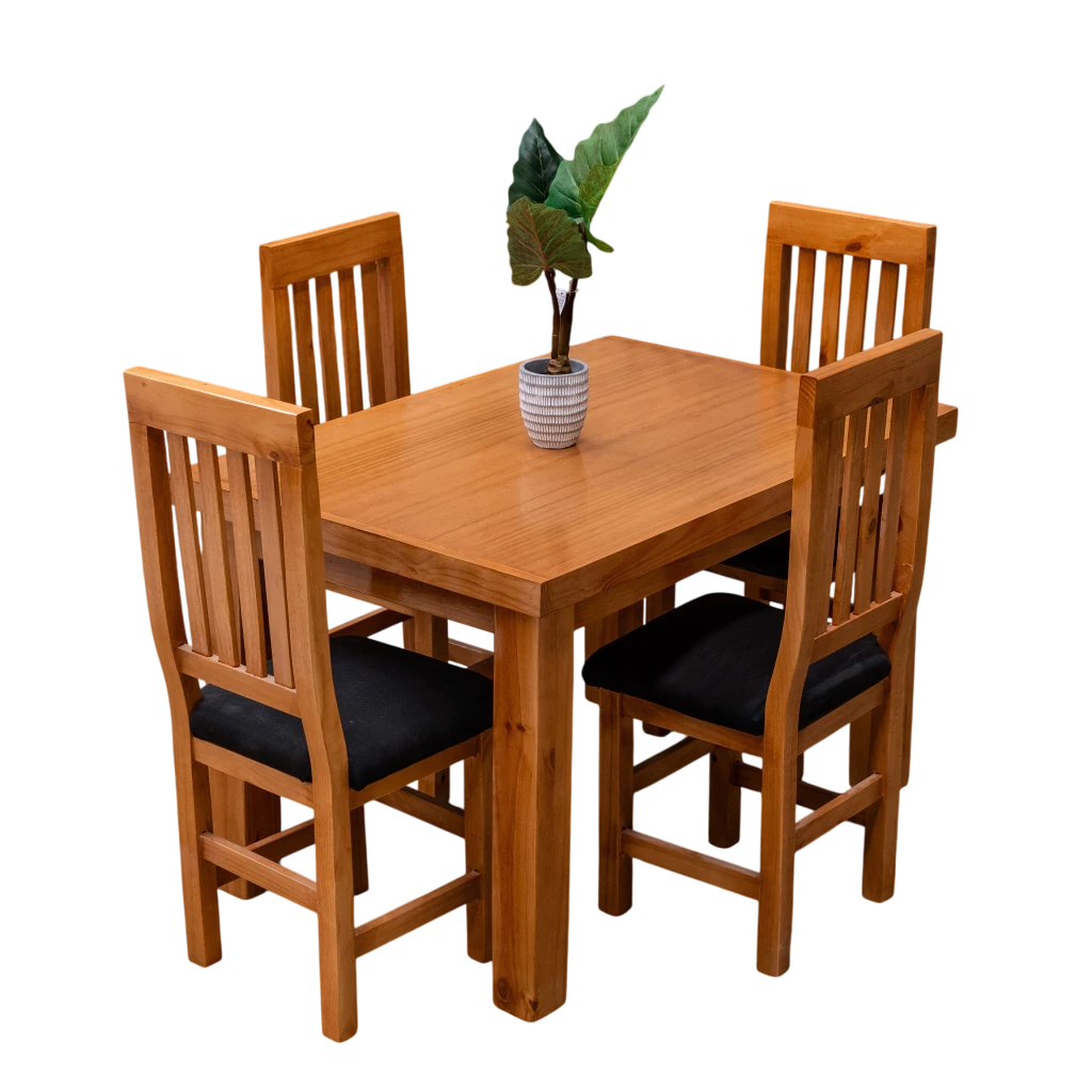 Fabricado en madera de pino clear, este juego de comedor no solo es resistente, sino que también aporta calidez y sofisticación a tu hogar. La elección de esta madera garantiza una durabilidad excepcional, ideal para uso diario y ocasiones especiales.