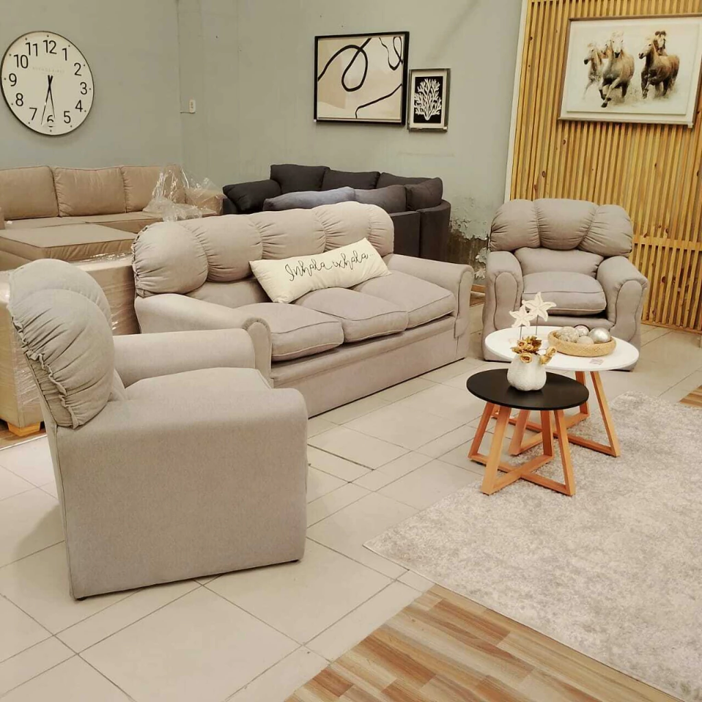 Descubrí el Living Guadalupe, un conjunto que combina diseño, confort y calidad para transformar tu espacio. Este set incluye un sofá de tres cuerpos y dos sofás individuales, todos tapizados en tela premium que aporta elegancia y durabilidad.