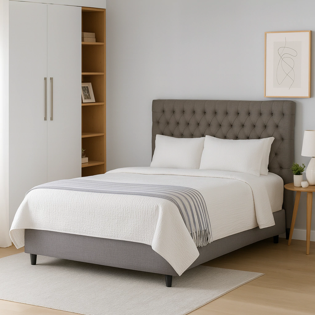 Este respaldo no solo decora, sino que también ofrece un apoyo cómodo para leer o descansar, ideal para quienes valoran el confort sin sacrificar el diseño. Fácil de instalar y mantener, es el complemento perfecto para renovar tu espacio con un toque de distinción.