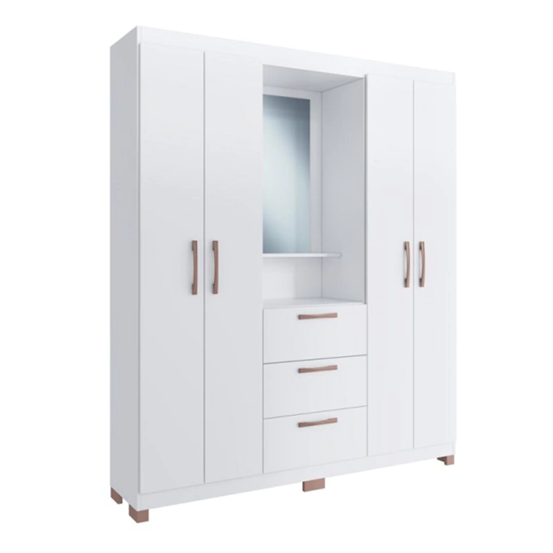 Su elegante acabado blanco combina perfectamente con cualquier decoración, mientras que sus 4 puertas, 3 cajones externos y 1 estante interno brindan un amplio espacio para organizar tu ropa y accesorios. Además, cuenta con un práctico espejo de 35x60 cm para facilitar tu rutina diaria.
