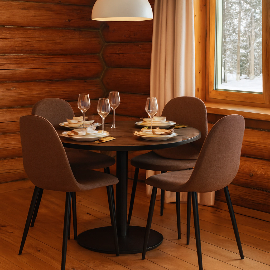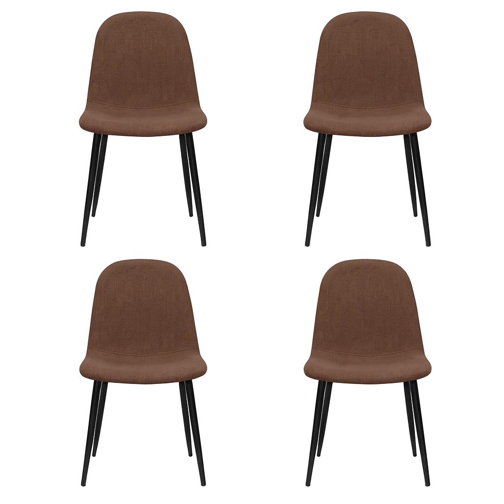 Set de 4 Sillas de Comedor Caño Negro con Tapizado en Tela Rústica Marrón Oscuro