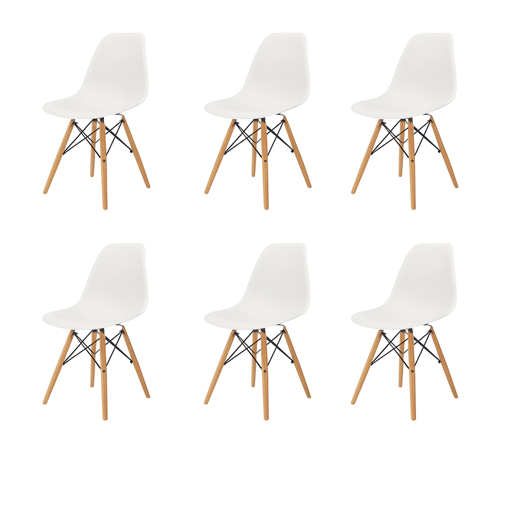 Set de 6 Sillas Eames PVC Madera Blanco/Natural (DC-4): diseño y funcionalidad en tu hogar