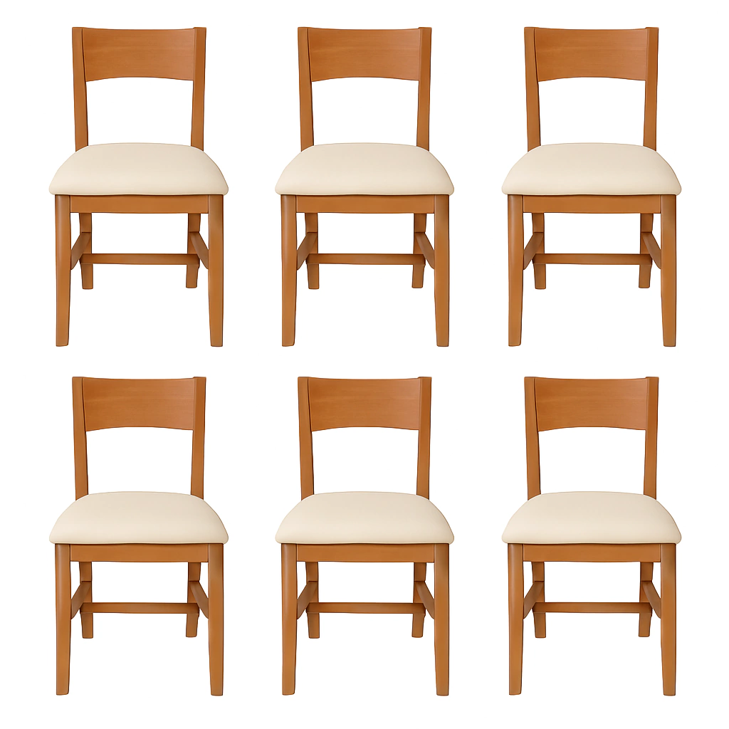 Descubrí el Set de 6 Sillas Giova (1402AMLBE), la combinación perfecta entre diseño y resistencia para tu comedor. Fabricadas en madera maciza de alta calidad, estas sillas destacan por sus uniones en espiga y escople, que aseguran una estructura sólida y duradera.