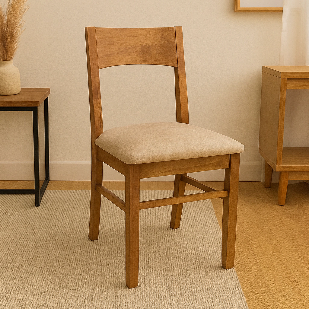 Su acabado en laca de poliuretano semi-mate color ámbar aporta un brillo elegante y sofisticado, mientras que el tapizado en tela Lenovo beige brinda comodidad y fácil mantenimiento, ideal para el uso cotidiano.