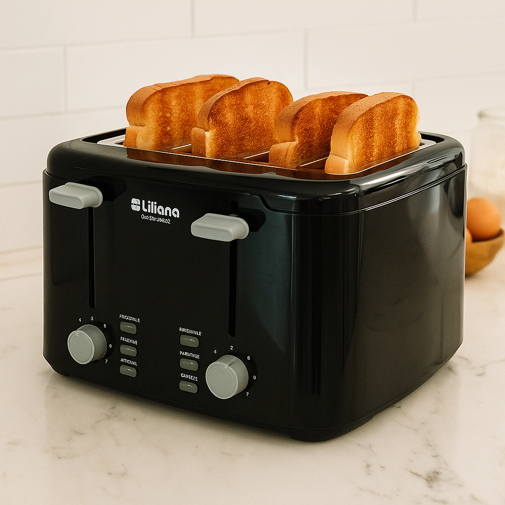 Tostadora Liliana AT924: el aliado ideal para tus mañanas Disfrutá de un desayuno perfecto con la Tostadora Eléctrica Doble Multislice de Liliana. Su diseño con 4 bocas grandes permite tostar varias rebanadas simultáneamente, ideal para familias o reuniones. Elegí entre 7 niveles de tostado para lograr el punto justo, desde un tostado suave hasta uno más intenso. Además, sus funciones de descongelado, recalentado y cancelado hacen que cada uso sea práctico y versátil.