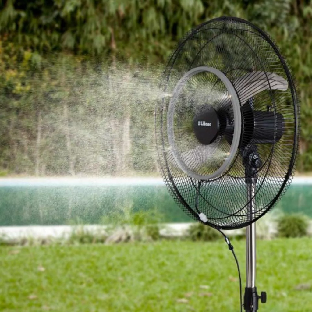Su innovador sistema expulsa una niebla micronizada que humedece el aire, logrando una cobertura aproximada de 30 m² sin necesidad de rellenar depósitos gracias a su conexión directa con agua de red. Además, funciona como un ventilador tradicional sin niebla cuando lo desees.